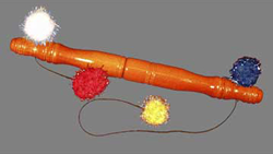 Mikame Craft from Japan produces products of collector?s quality! Each item is hand-crafted by Mr. Mikame himself and are coveted by magicians worldwide! This effect is a CLASSIC, now offered in Mikame class! Show a walnut wooden pole with a cord passing through each end. There are 4 different colored pom-poms attached to each end of the cord. Each time one pom-pom is pulled another pom-pom goes into the stick indicating that it is connected. It gives the illusion that the string has four ends. For the ending you separate the Pole showing there is no cross-connection between the pom-poms. Put it back together and again it works again! -No Preparation Required! -Break-Apart Pole! -All Ready to Perform! -Perfect Illusion! |